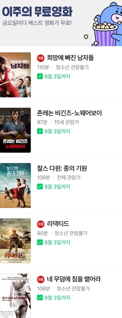 | (네이버 시리즈온 무료영화) 다시 사랑할 수 있을까?, 라자루스, 존레논 비긴즈:노웨어보이 등 (0) | 2023.08.11 |
