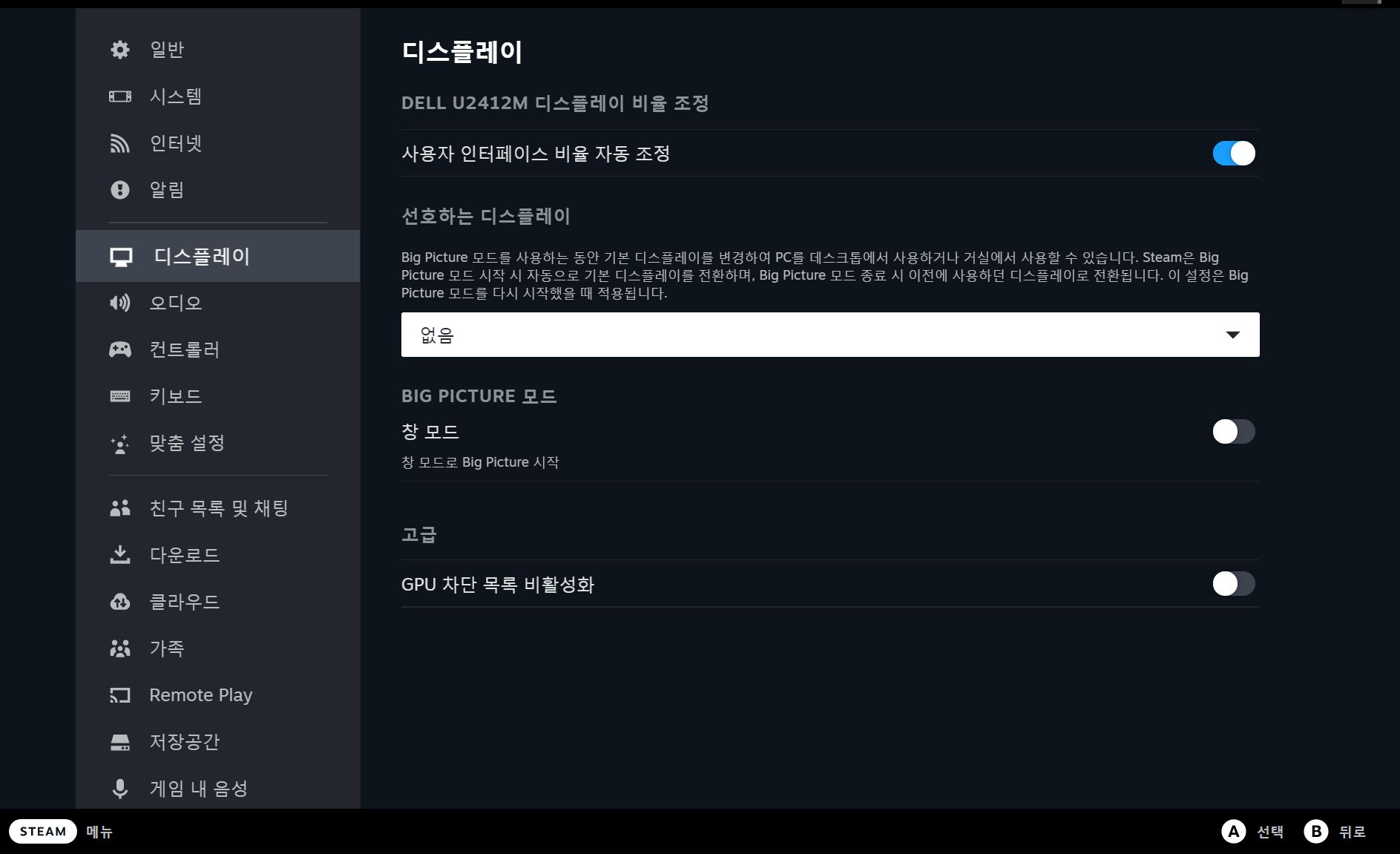 문제는, 빅 픽처 모드를 해제하면 세컨드 모니터로 플레이할 수 없어요.