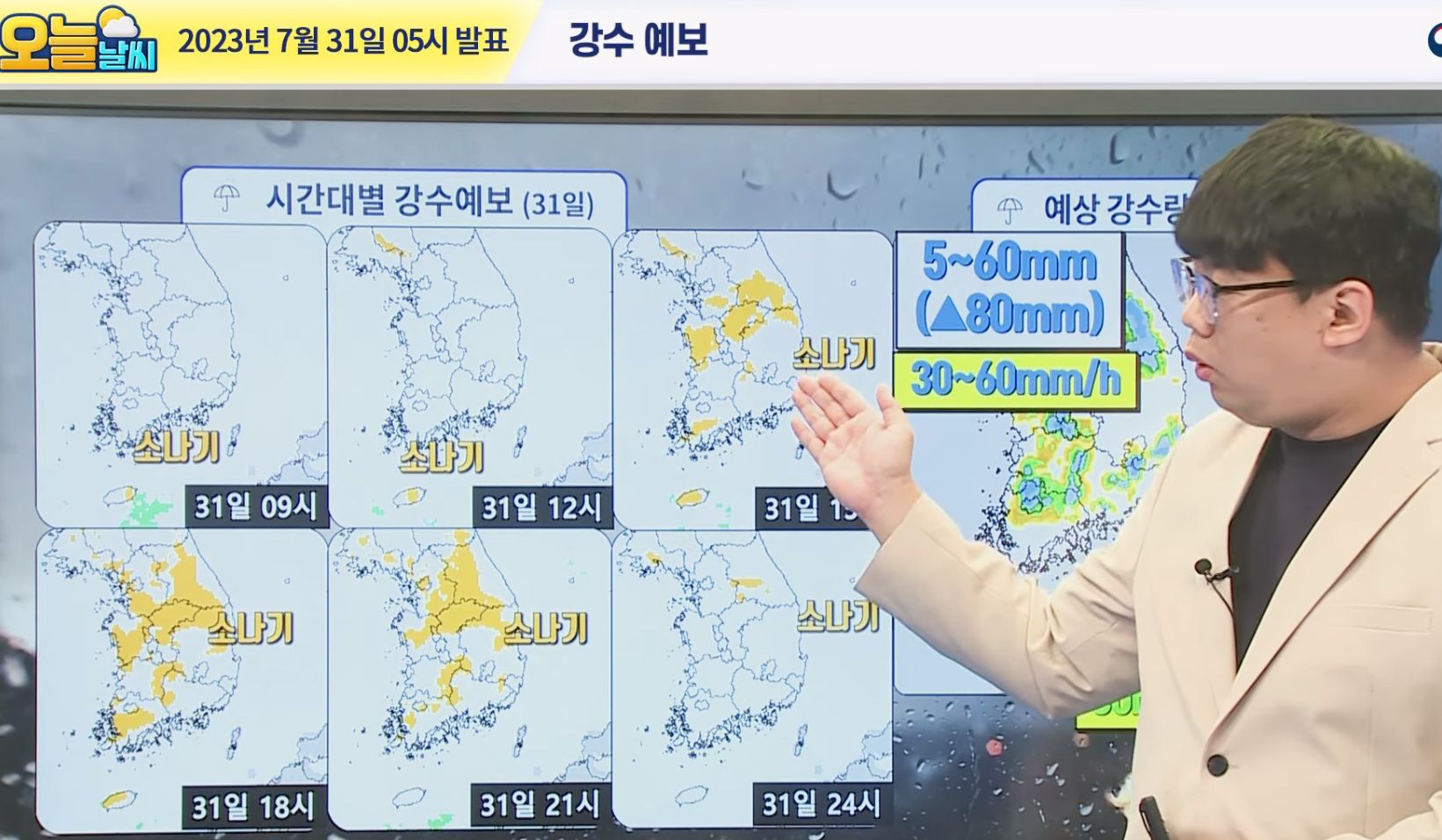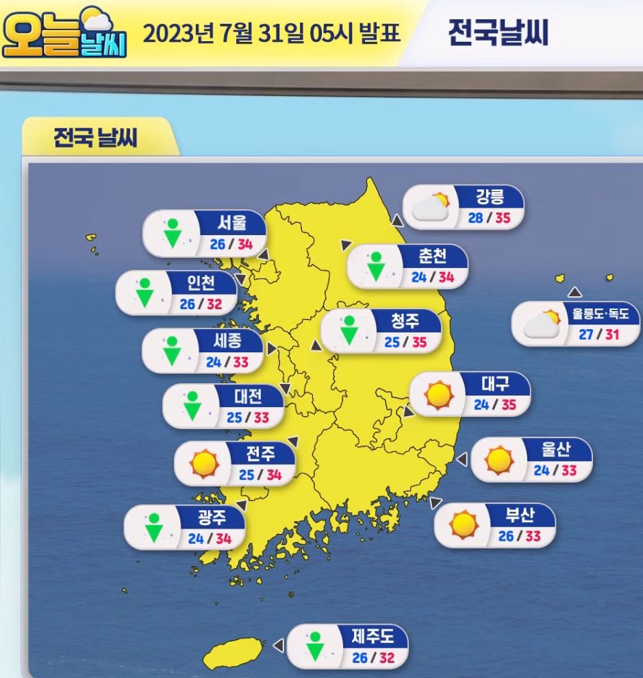 [오늘날씨] 온열질환 주의! 오후 소나기 곳. 7월 31일 5시 기준
