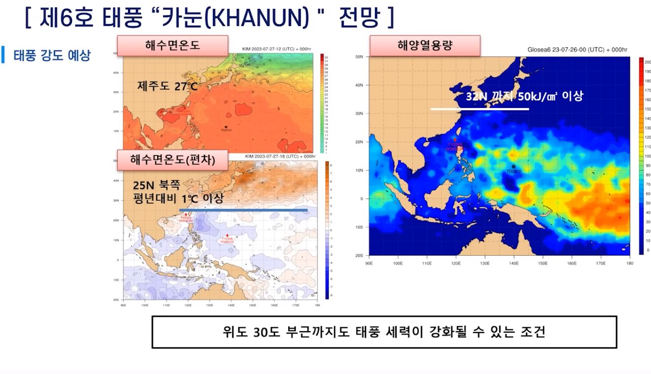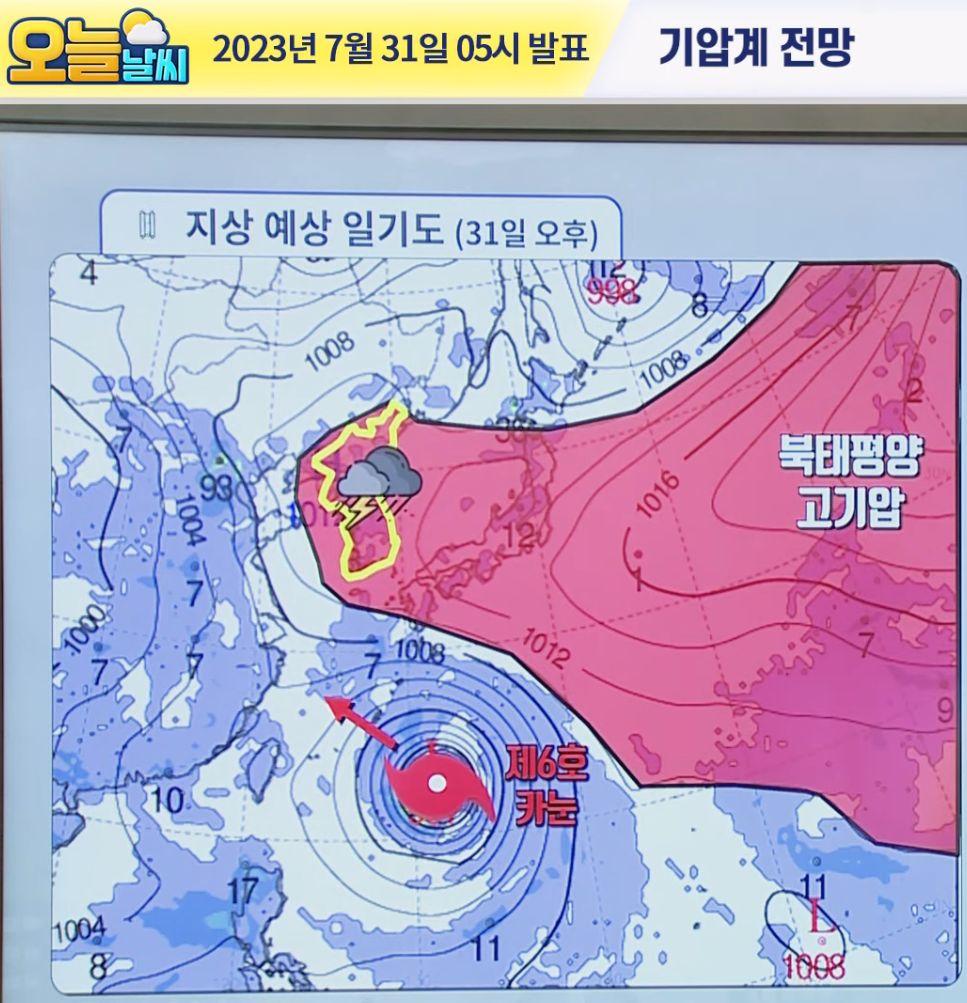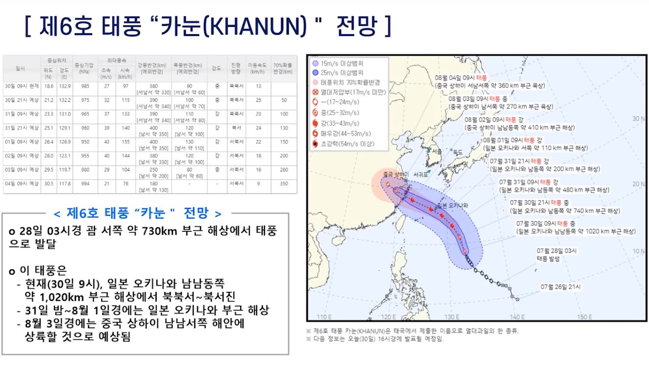 [기상청 브리핑] 전국 폭염특보! 제6호 태풍 카눈 이동 경로와 우리나라 영향은? (7월 30일 저녁 기준)