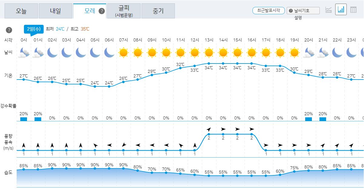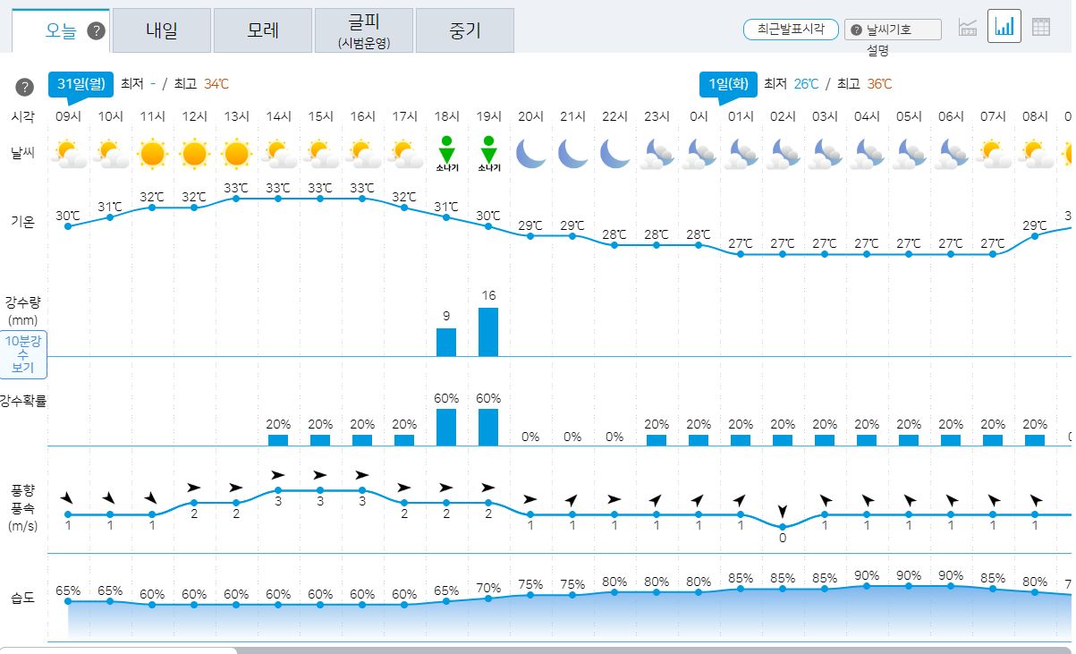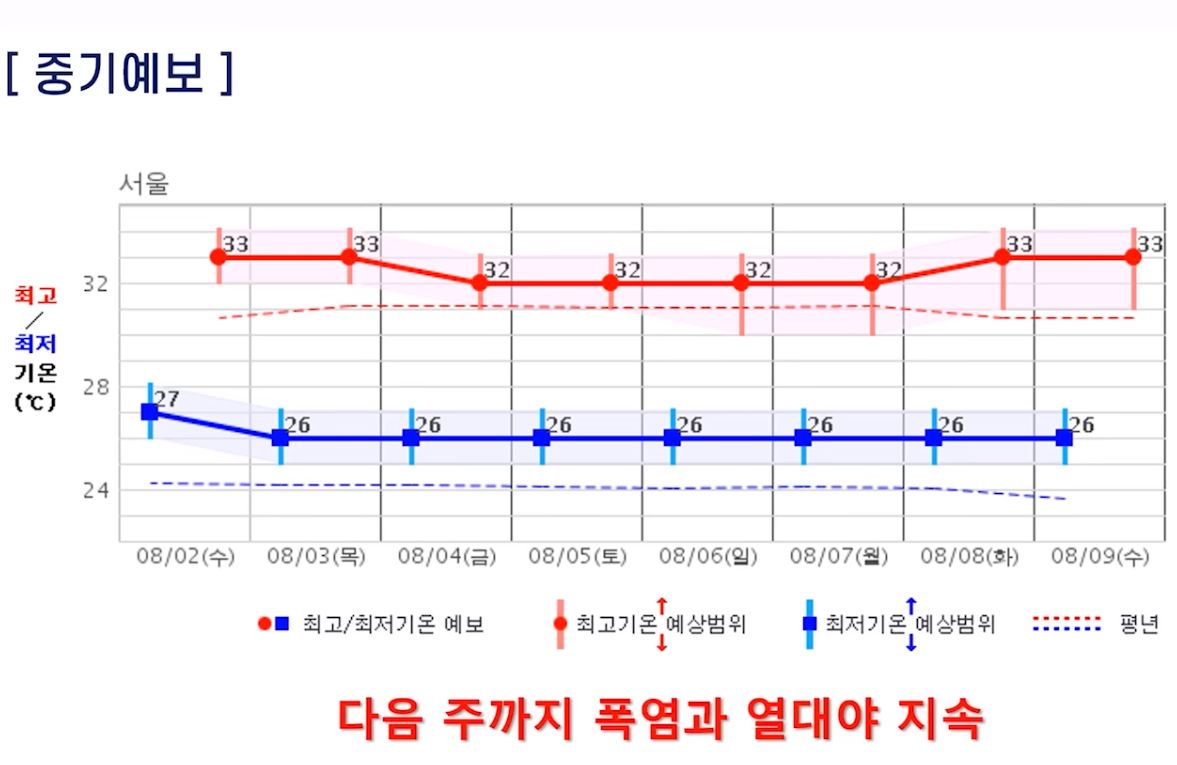 2023.7.31.월.~8.10.목 서울,대전 날씨/일기예보: 소나기, 폭염+열대야 본문