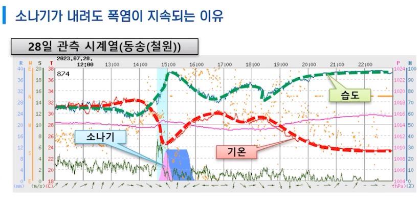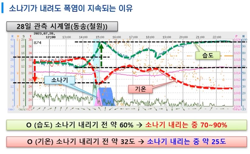 소나기가 내린 물기가 강렬한 햇볕에 증발, 대기중 습도가 높게 유지되고 완전히 마르기 전에 또 소나기..