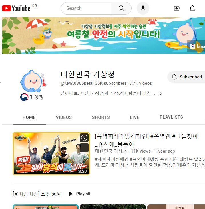 그것이 유튜브 기상청채널에 올라와있습니다.