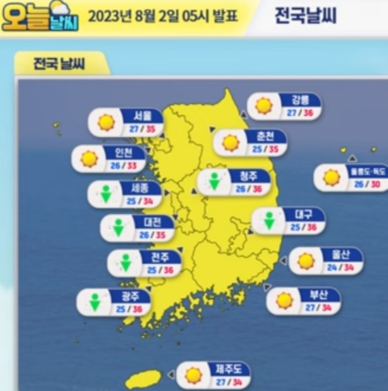 2023.8.2. 날씨: 폭염+중남부지방 소나기+열대야 본문