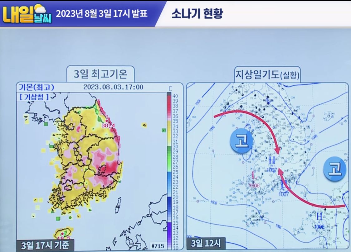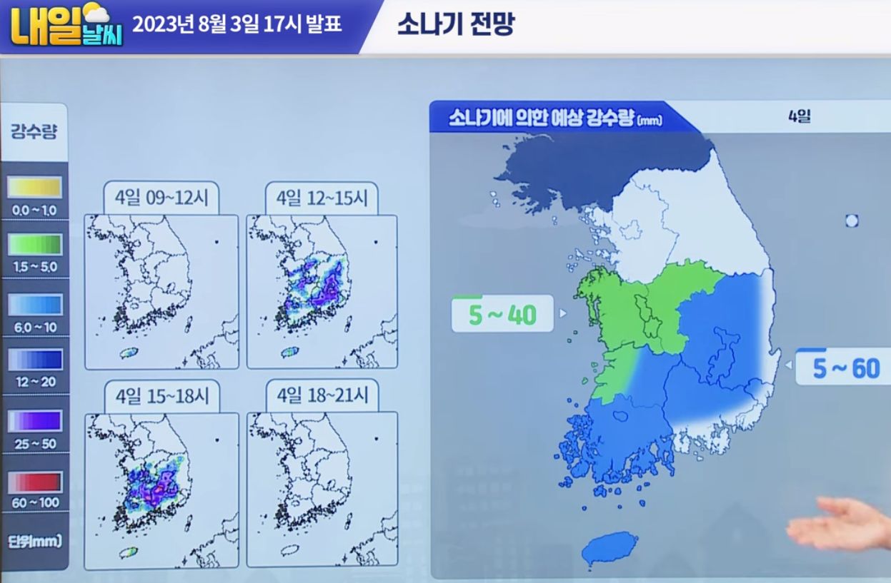 (2023.8.3. 17시기준) 기상청 8월 4일 일기예보 본문