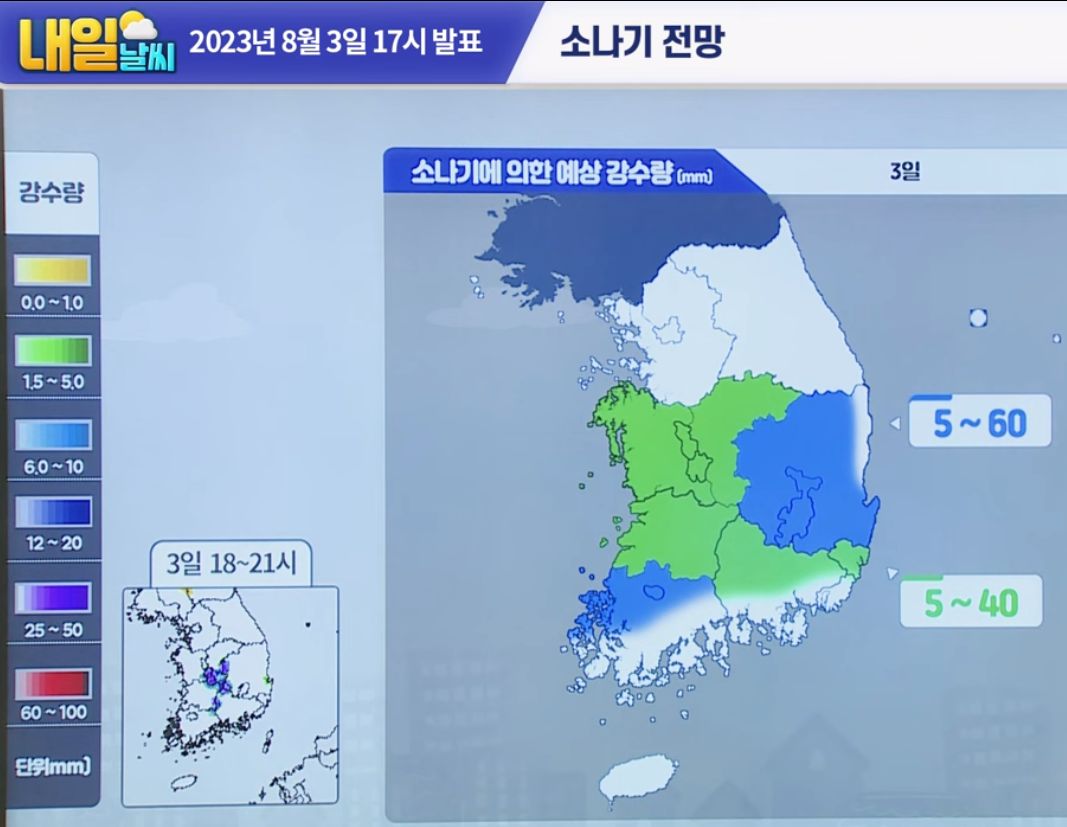 | 8월 2일 저녁, 3일 일기예보 (기상청) (0) | 2023.08.02 |