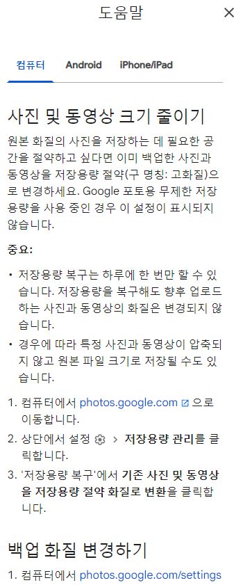 저장용량 관리하기 - Android - Google 포토 고객센터