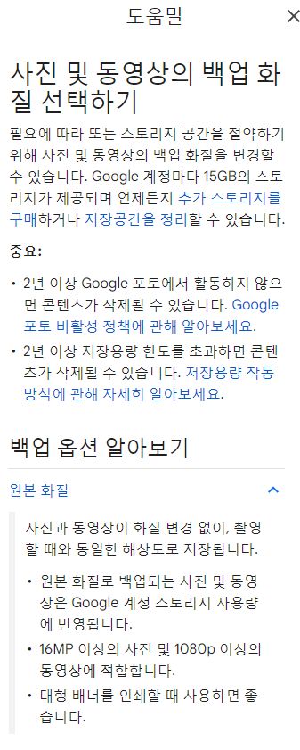 사진 및 동영상의 백업 화질 선택하기 - 컴퓨터 - Google 포토 고객센터