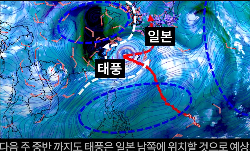 다음 주 중반까지도 일본을 넘어오지는 못할 듯.