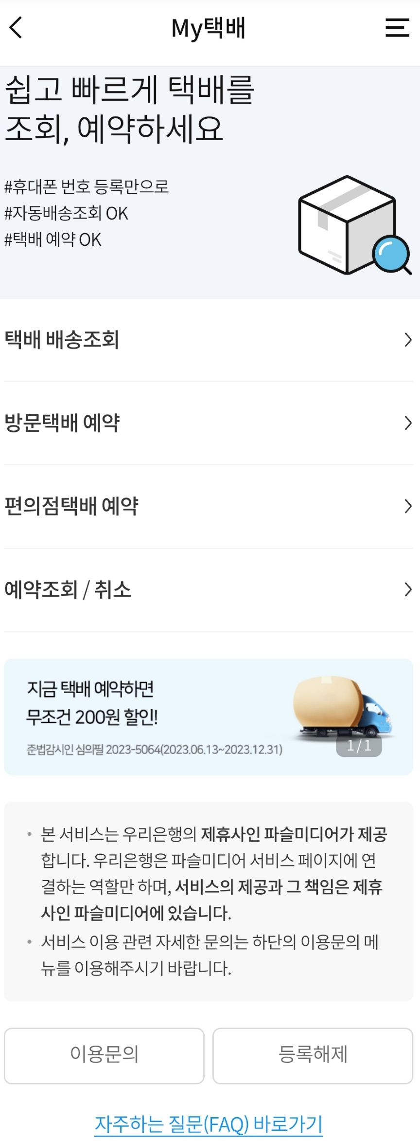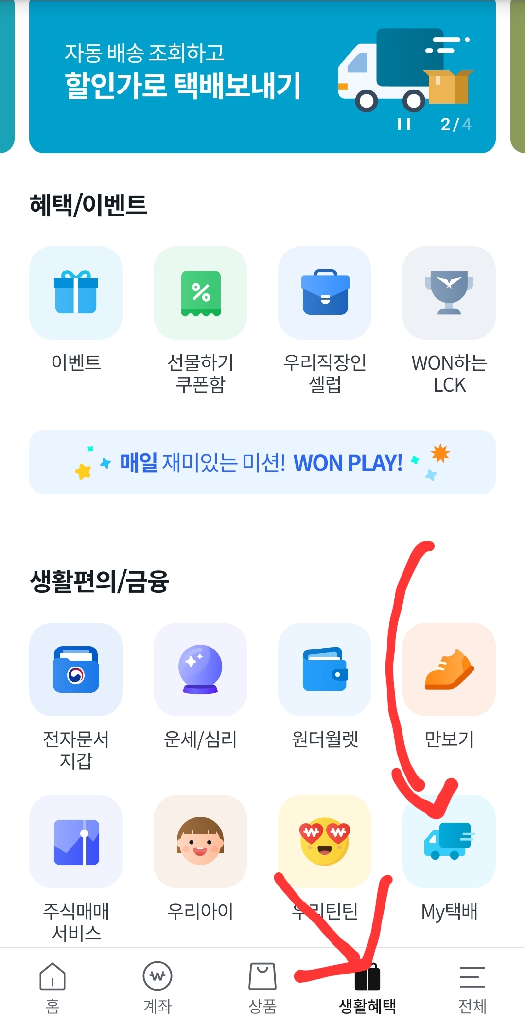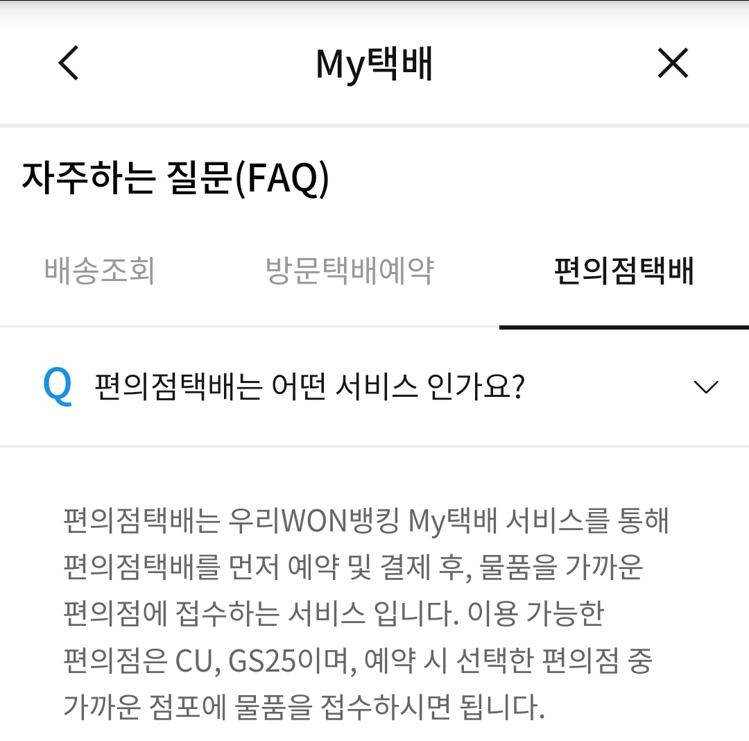 우리은행앱 My택배 (방문택배, 편의점택배 예약) 본문