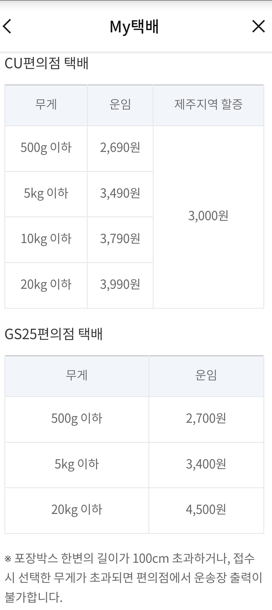 무게 운임 제주지역 할증