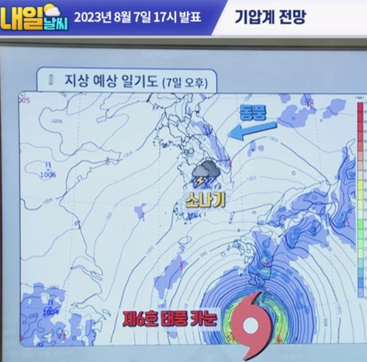 | 제6호 태풍 카눈 진로(2023.8.8. 16시, 기상청): 남해 →대전 →서울 →~ (0) | 2023.08.08 |