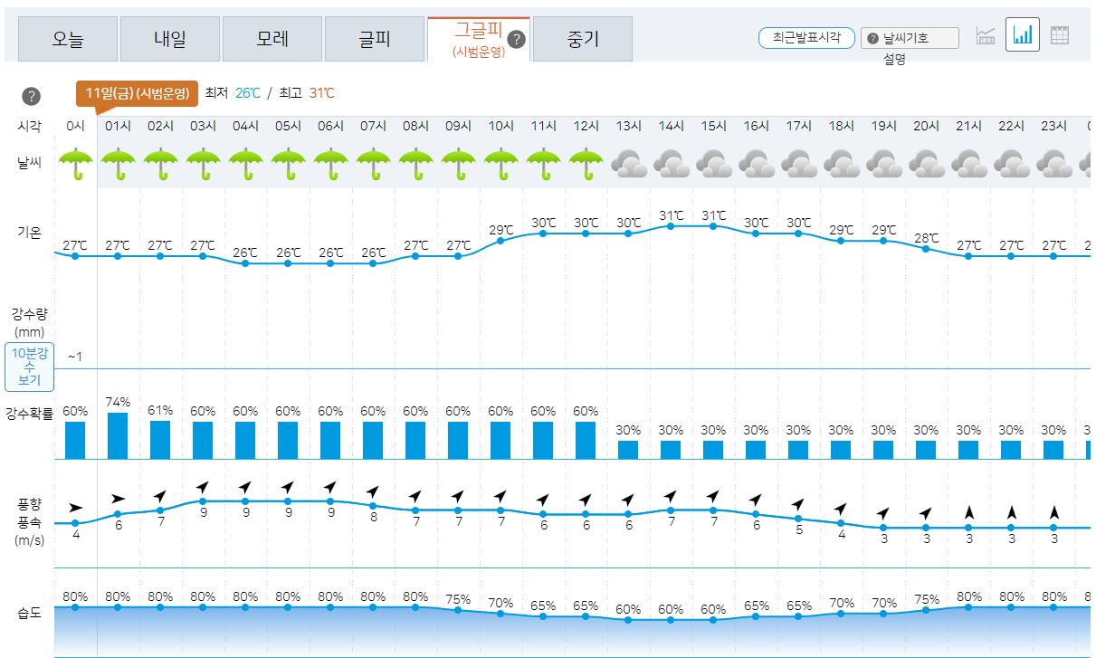 주중 서울, 대전날씨: 수요일밤부터 비와 소나기, 태풍