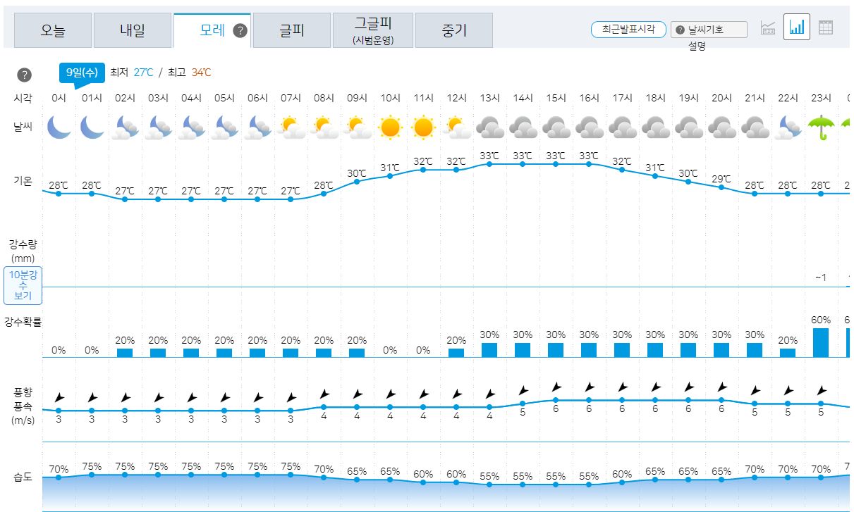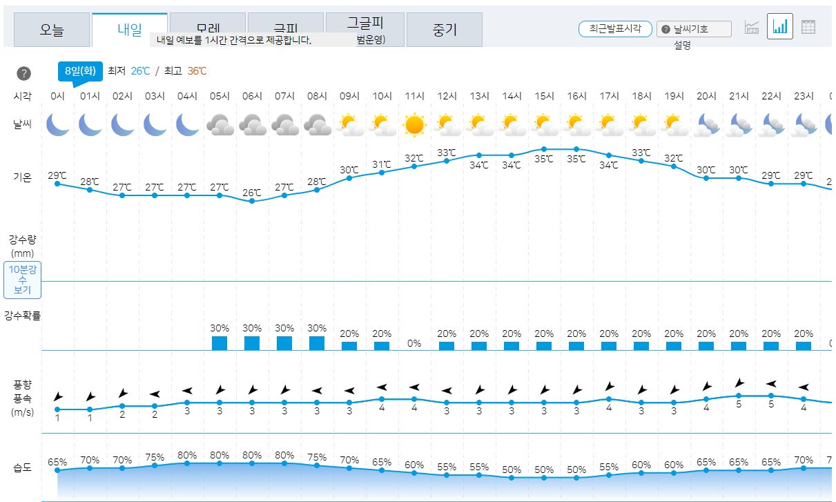 [내일날씨] 내일도 찜통더위, 강한 너울 주의! 8월 7일 17시 기준
