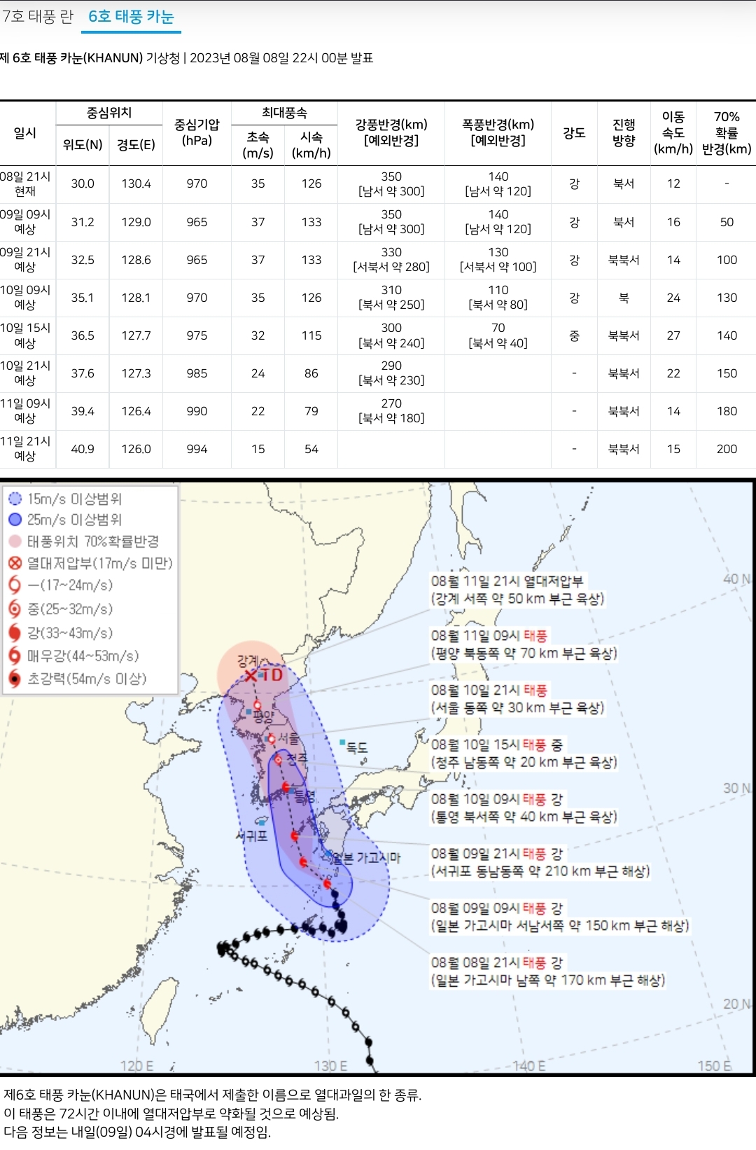 제 6호 태풍 카눈(KHANUN) 기상청 | 2023년 08월 08일 22시 00분 발표