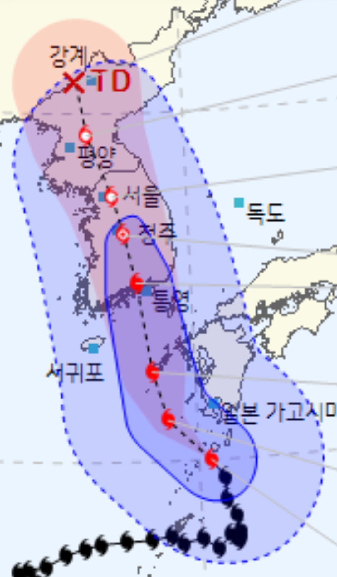 태풍 코스는 더 이상 바뀌지 않네요.