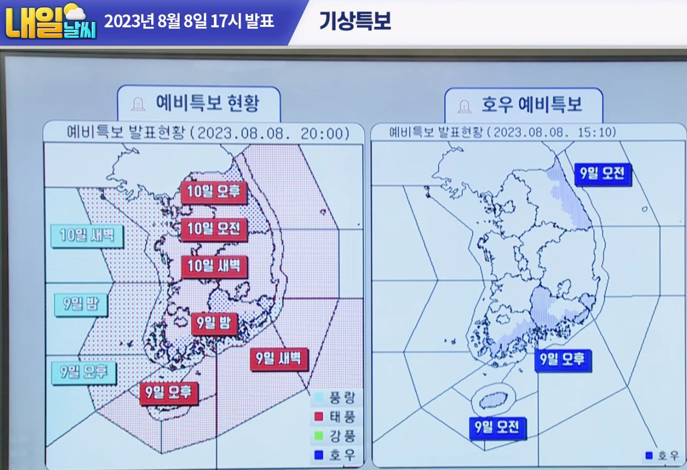 (2023.8.9. 기상청) 태풍 카눈 관련 보도자료, 기상청 유튜브, 일기예보 등 본문