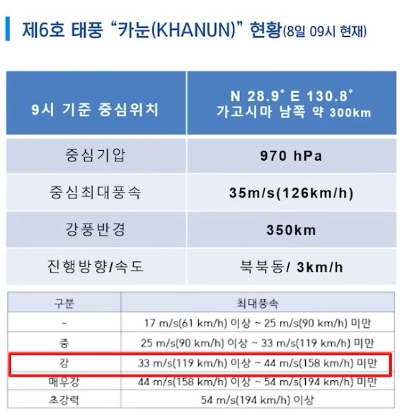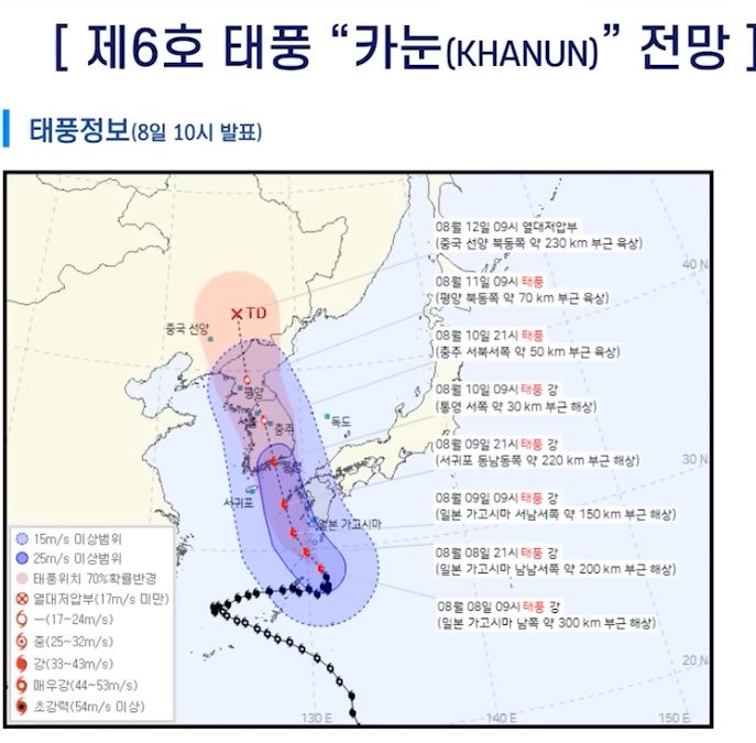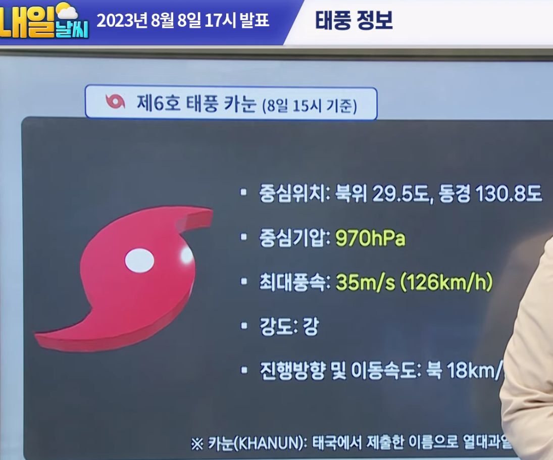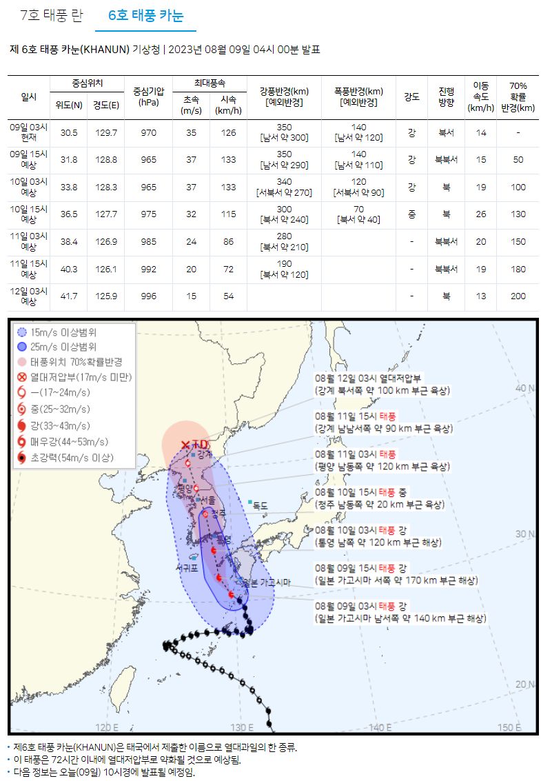 제 6호 태풍 카눈(KHANUN) 기상청 | 2023년 08월 09일 04시 00분 발표