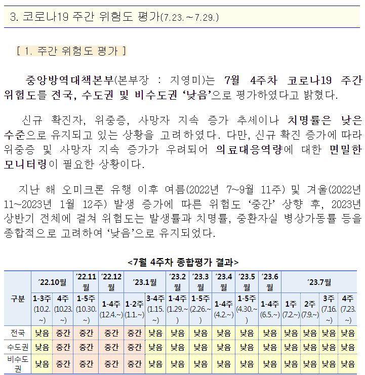 | 코로나19(2023.8.2) 질병관리청 보도자료: 실내마스크 착용 등 일상방역수칙 생활화 등 (0) | 2023.08.09 |