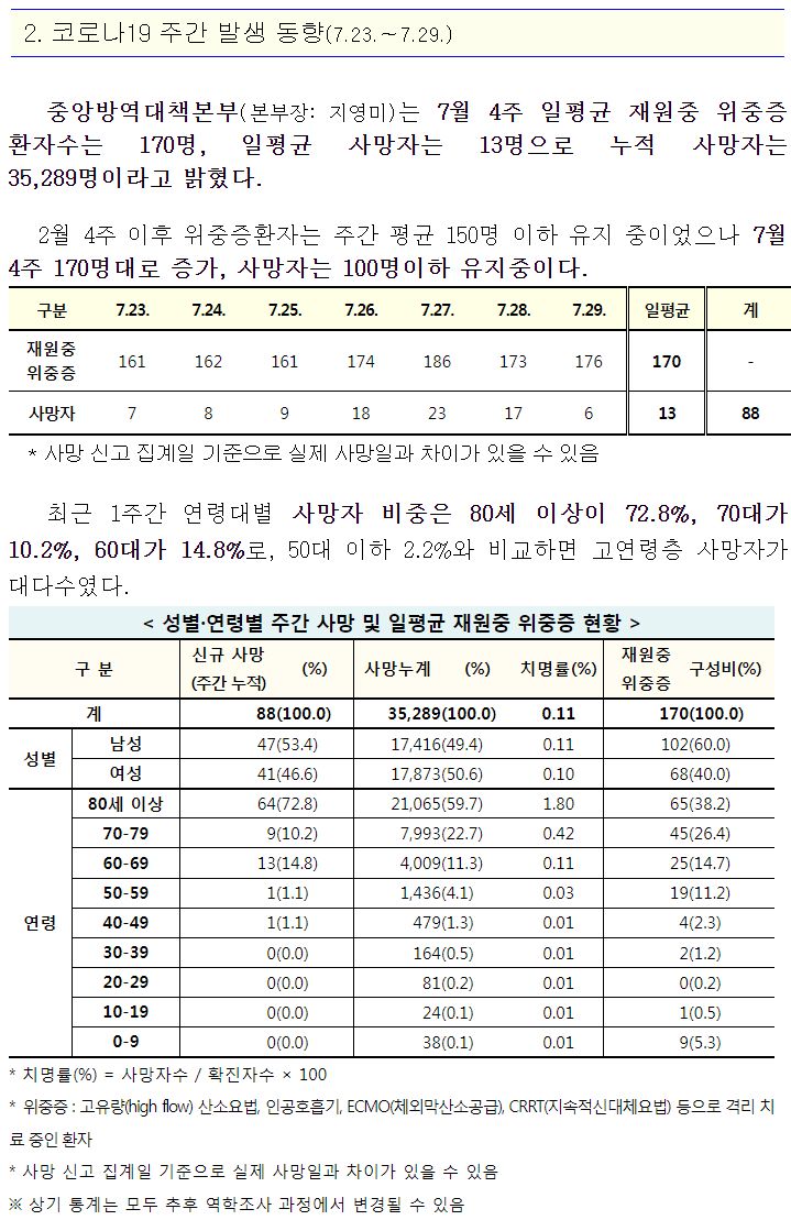 코로나19(2023.8.2) 주간 발생 동향(7.23.∼7.29.) 본문