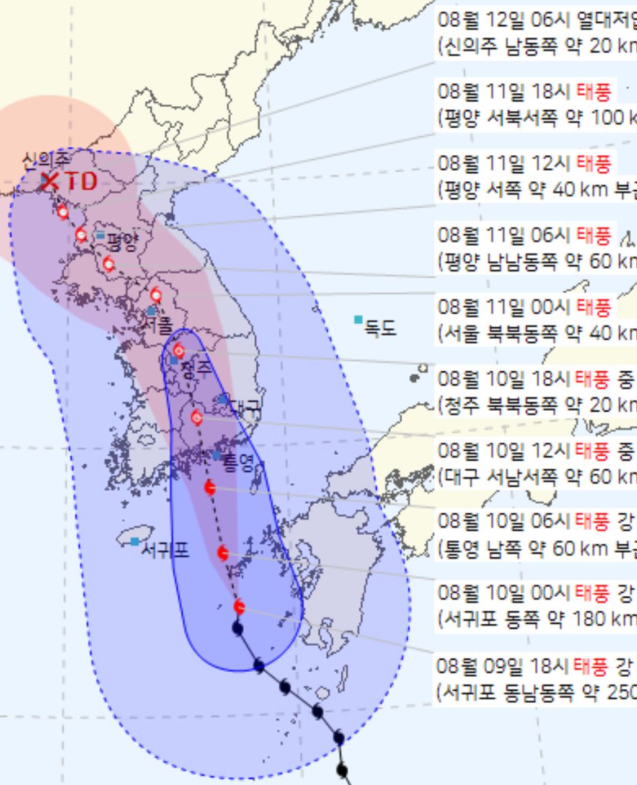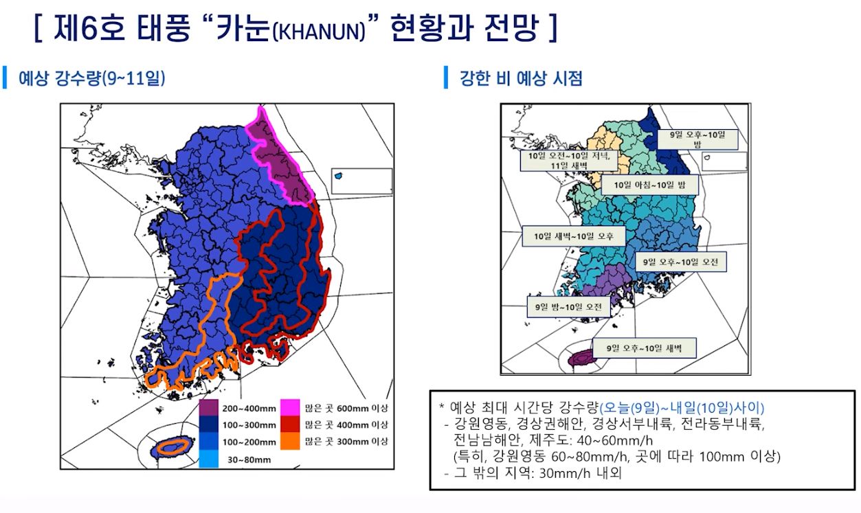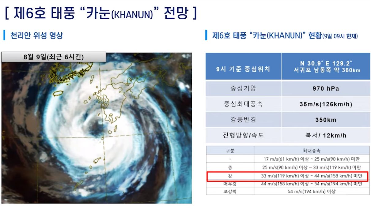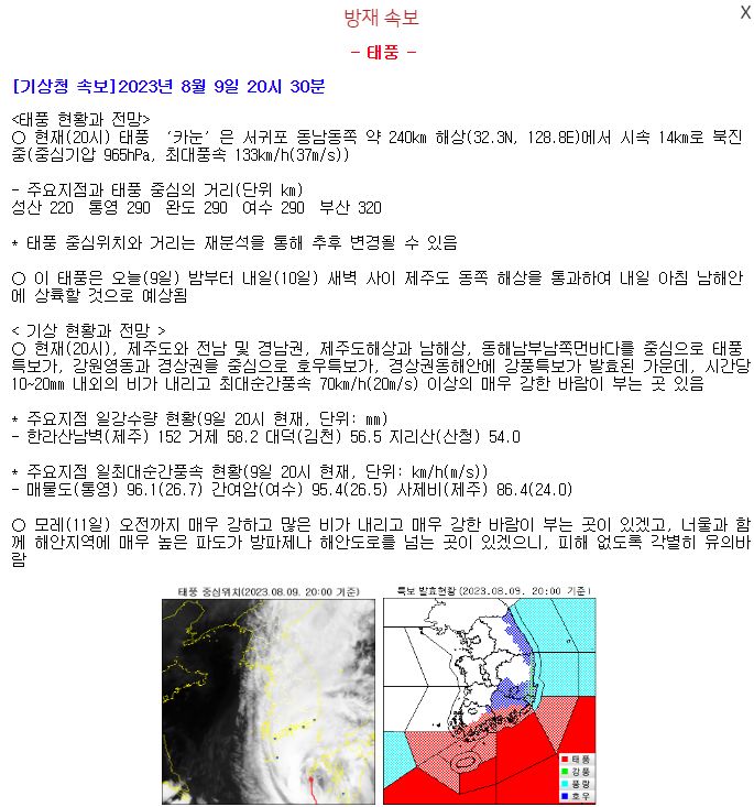 ★★★(2023.8.9. 20:30) 제6호태풍 카눈 관련 기상청 보도자료: 남해->대전->서울 본문