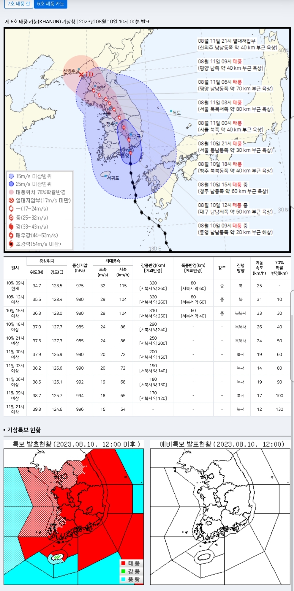 제 6호 태풍 카눈(KHANUN) 기상청 | 2023년 08월 10일 10시 00분 발표