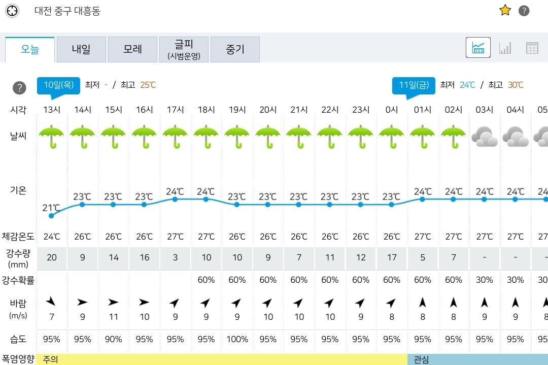 기상청 속보]2023년 8월 10일 11시 30분