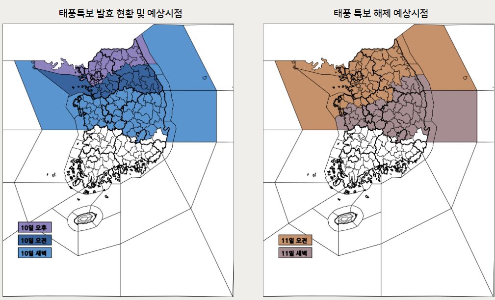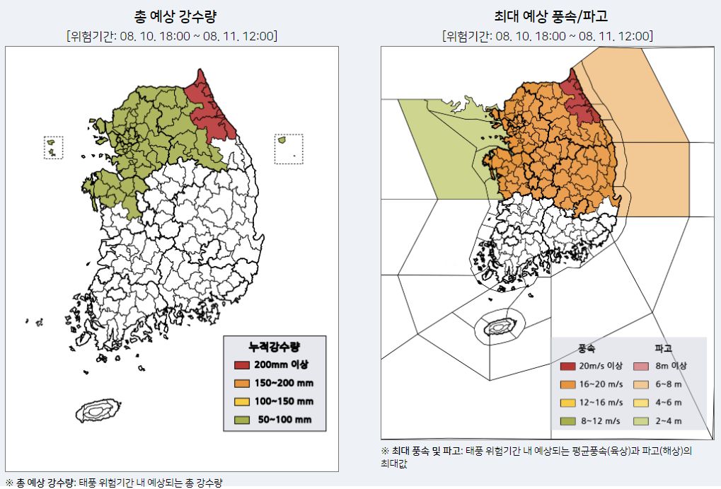 지역별 태풍 위험시점 정보, 2023년 08월 10일 기준 (2023년 08월 10일 18시 00분 발표)