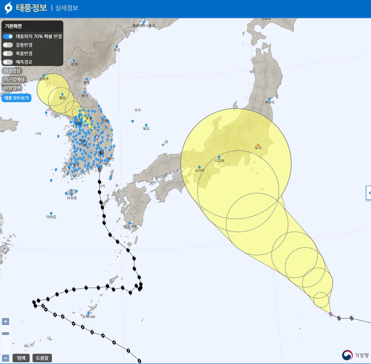 기상청 태풍 상세정보, 큰 지도