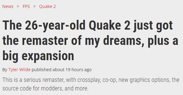 The 26-year-old Quake 2 just got the remaster of my dreams, plus a big expansion