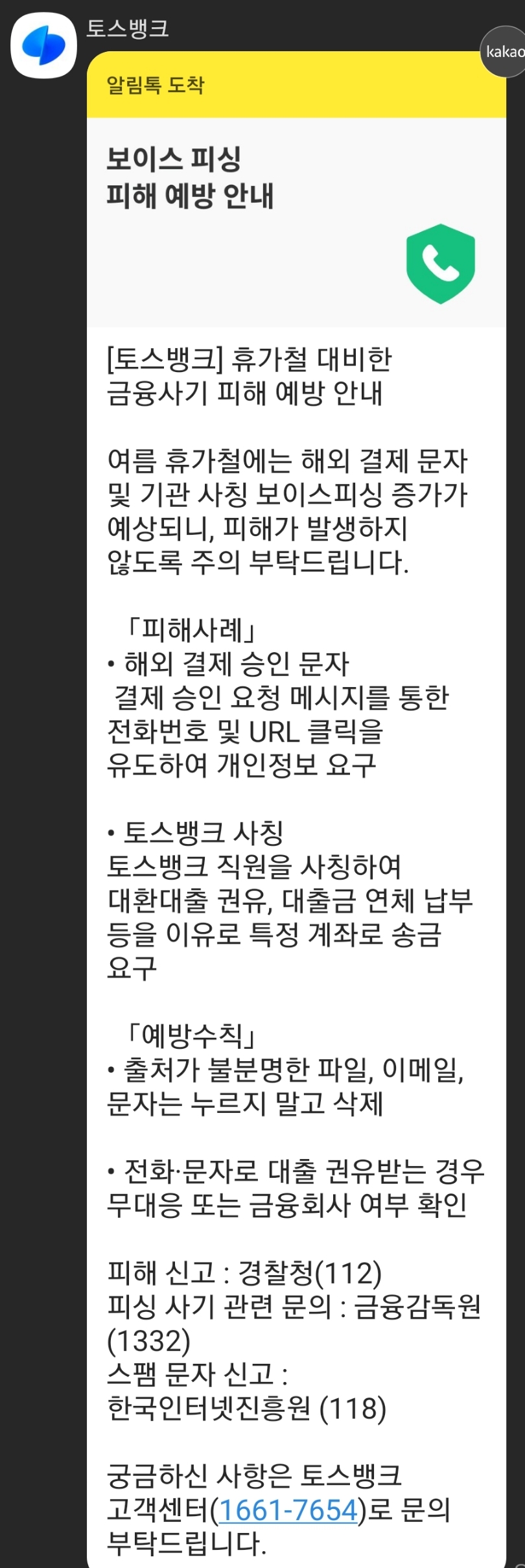 토스뱅크직원 사칭문자/보이스피싱 주의 (스미싱) 본문