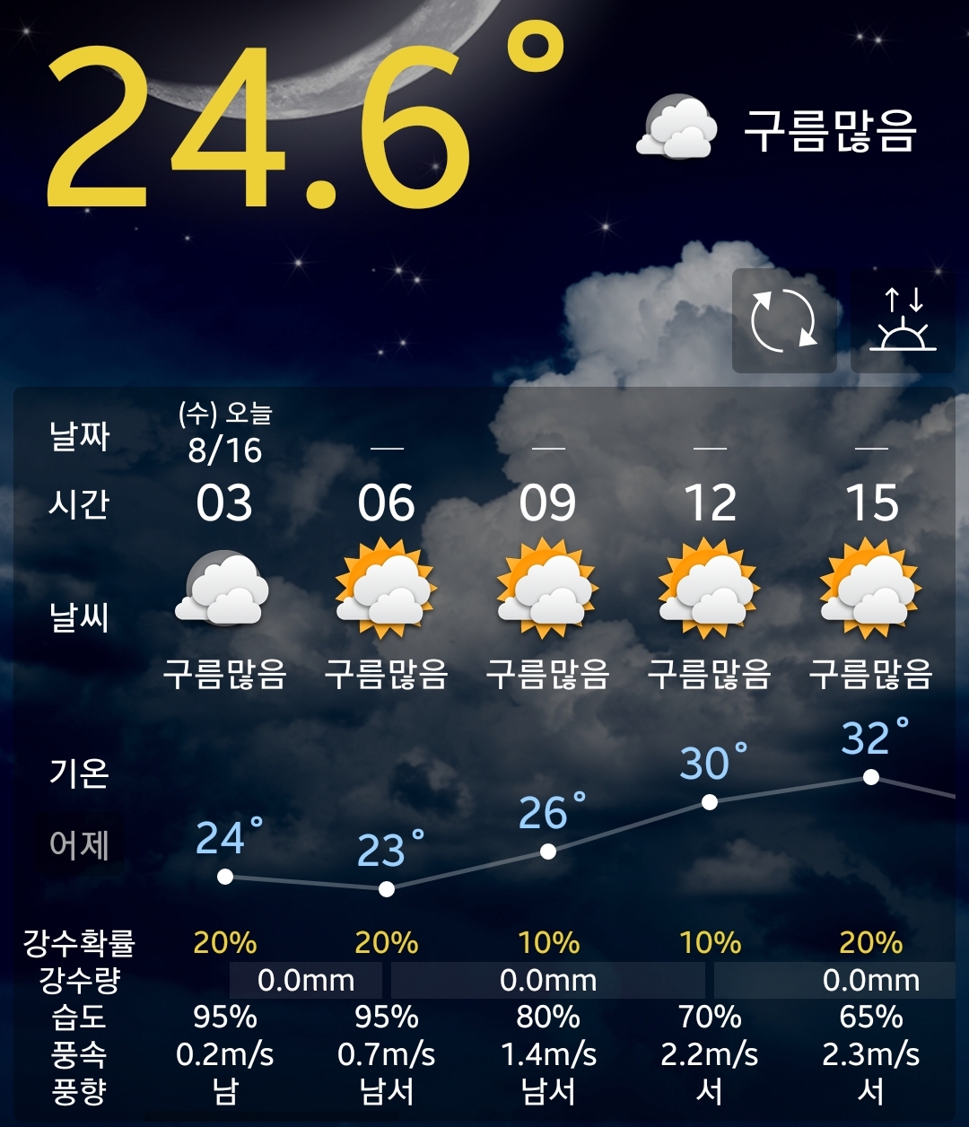 | 2023.8.21.월. ~8.30.수. 일기예보(기상청): 이번주내내 소나기오는 날씨 + 고온다습: 폭염 + 열대야 (0) | 2023.08.21 |
