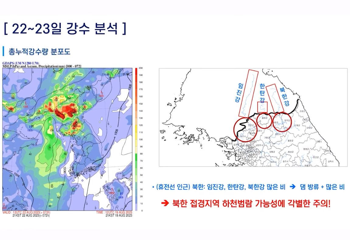 강수량은 북한쪽이 많아서, 접경지역은 홍수주의