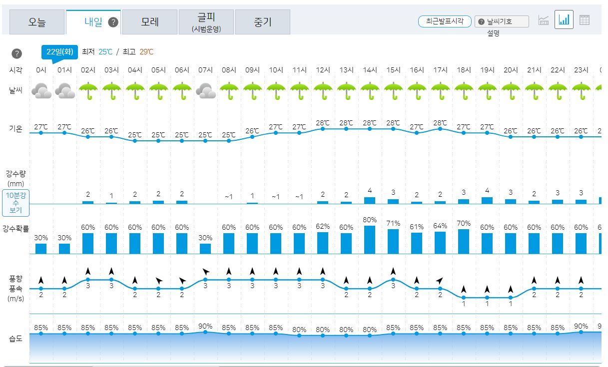 대전, 오늘예보부터 중기예보까지