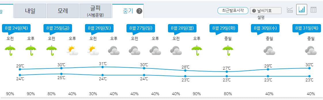 먼저 서울 대전 주간날씨와 중기예보부터.