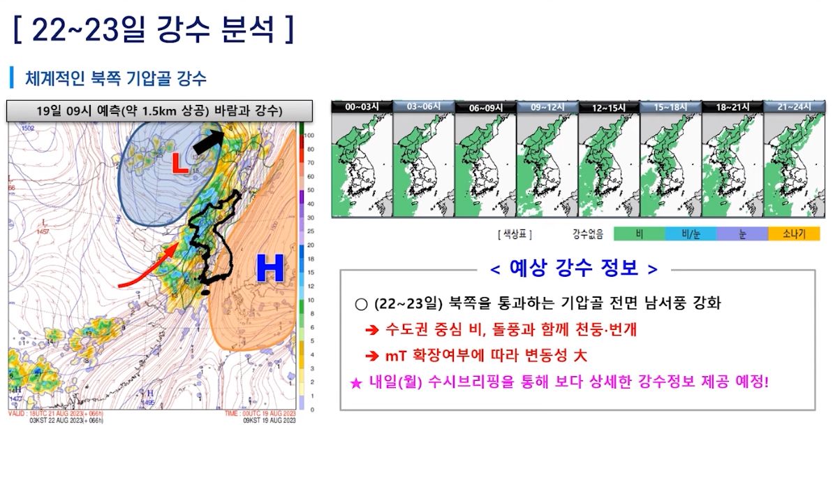 [기상청 브리핑] 22일(화)부터 비 내려요! 수도권에서 전국으로 확대! (21일 저녁예보)