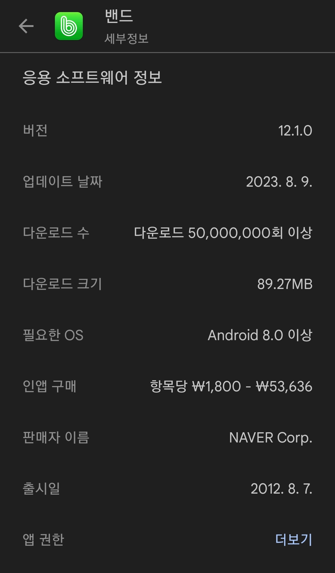 네이버 밴드앱 설치 조건은 안드로이드OS 8.0이상 본문