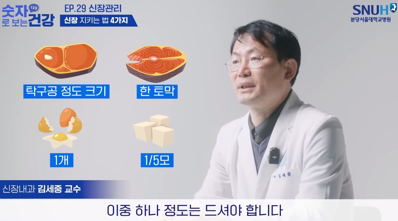 식습관 관리: 단백질은 고단백식이 금지, 나트륨은 권장량넘지 않게