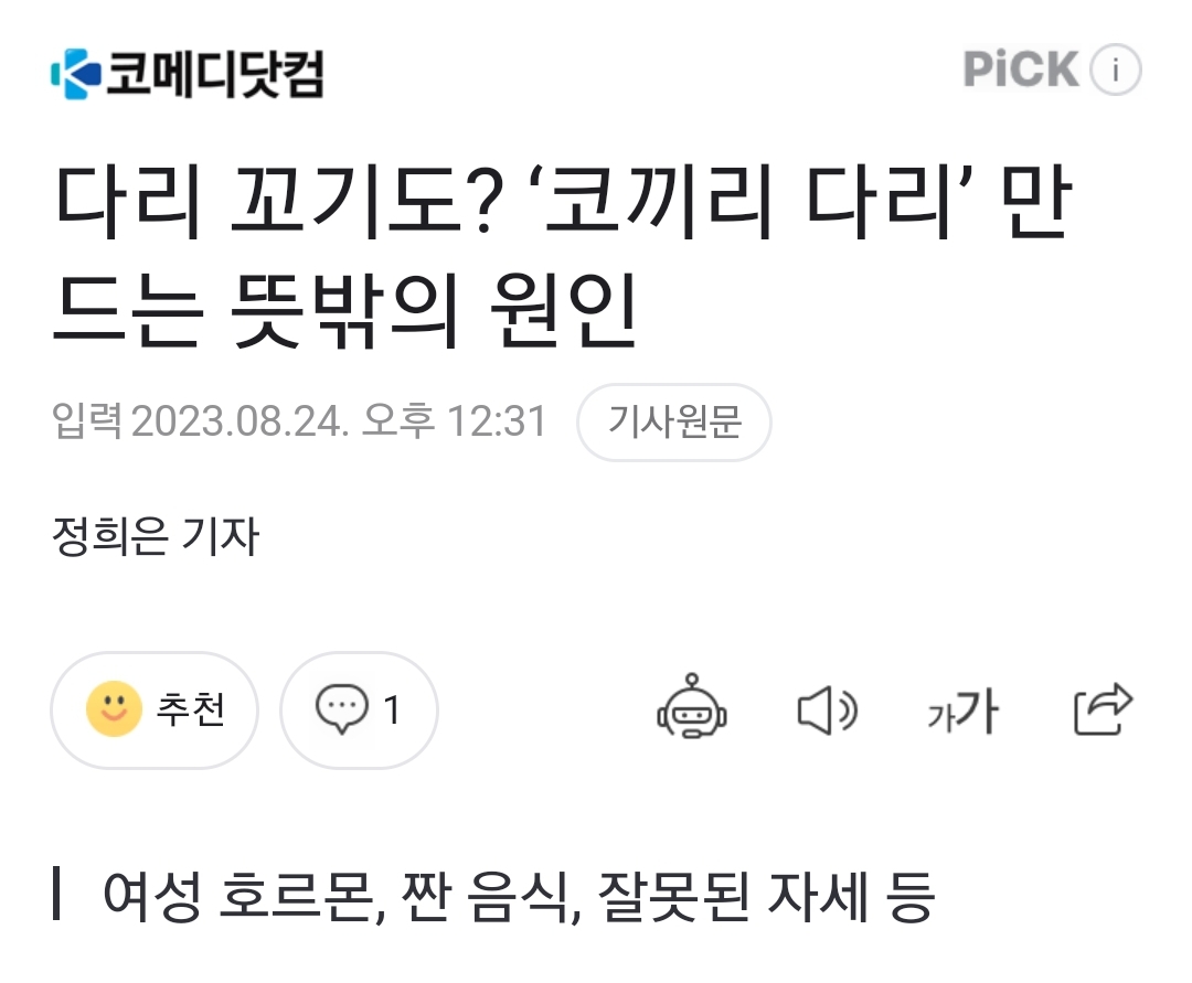 ㅡ 꼭 붙는 하의를 자주 입거나 운동이 부족한 경우, 근력 저하와 험께.