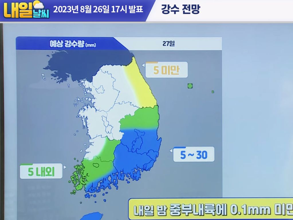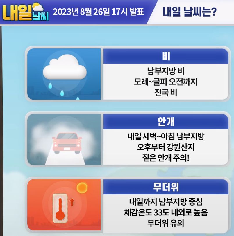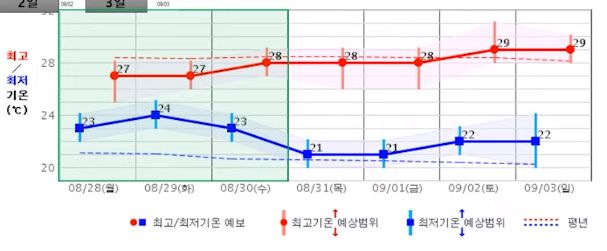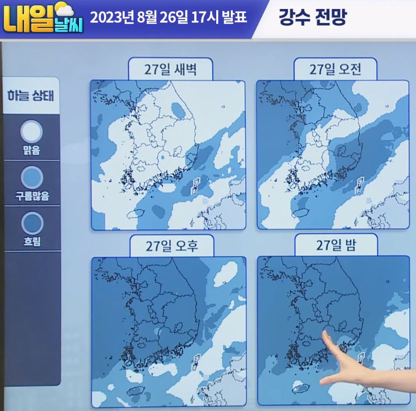 날이 시원해서 좋네요. 2023.8.27.일요일 ~월요일 일기예보 (기상청) 본문