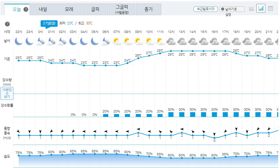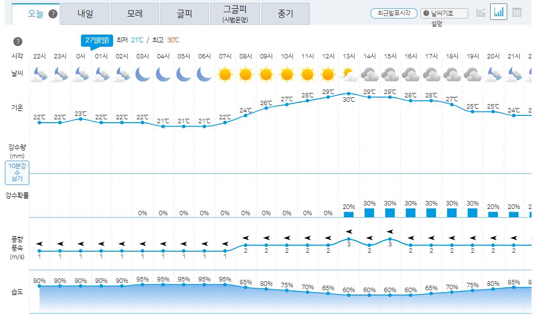 8.27.일. 서울. 낮습도 60%, 낮최고 29도