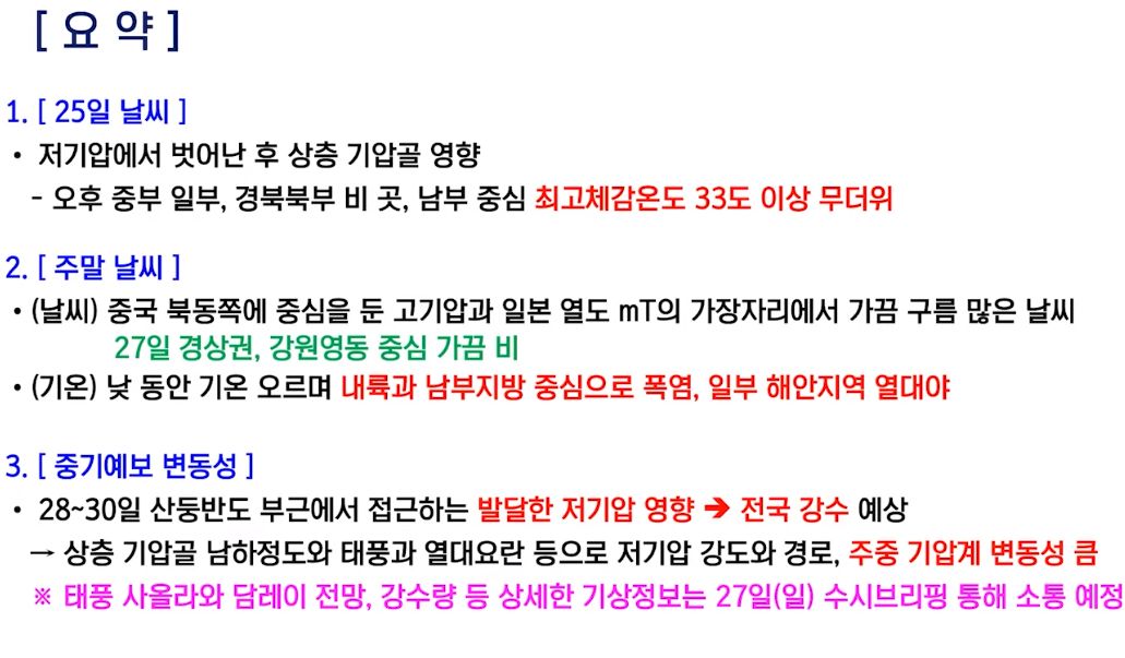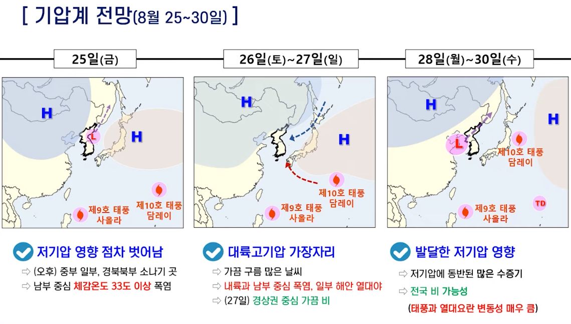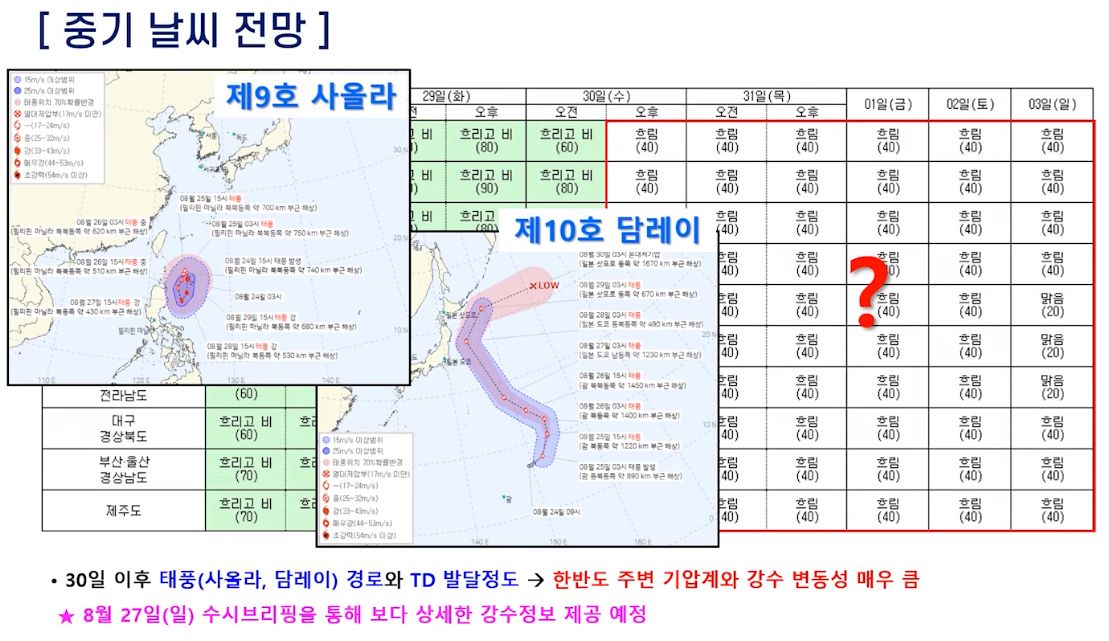 [기상청 브리핑] 주말 대체로 맑지만 다음 주엔 비가 내려요! 태풍 연속 발생! (Aug 25, 2023)