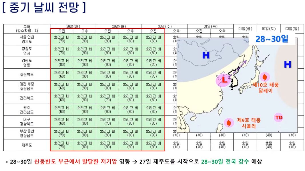 다음 주초인 8월 28~30일 사이에는 전국이 비예보가 있습니다.