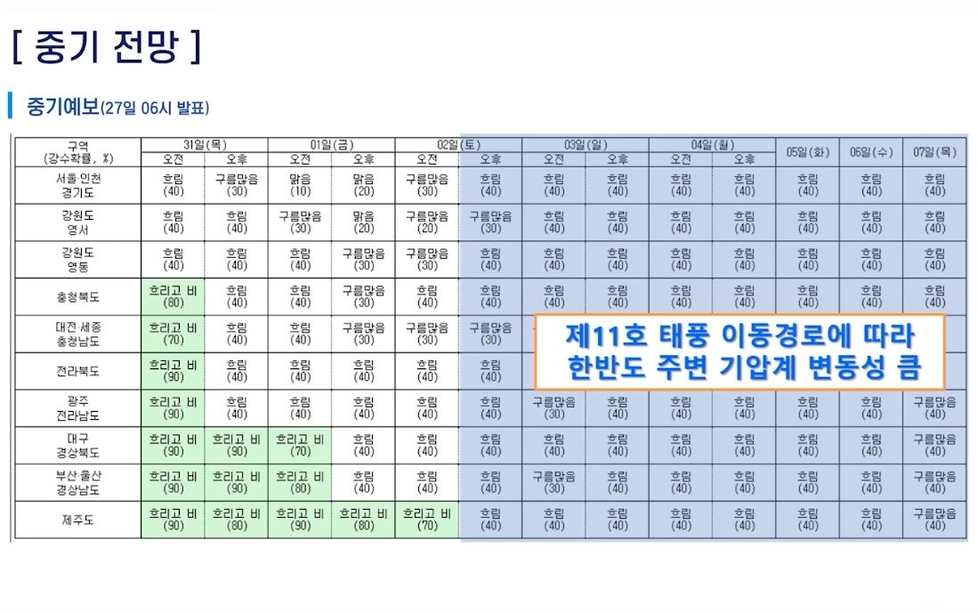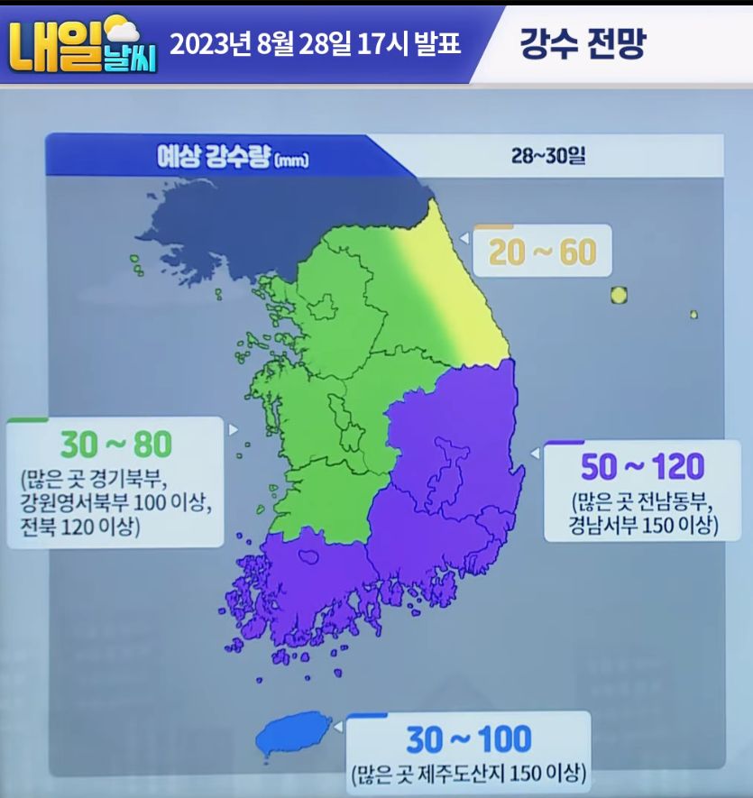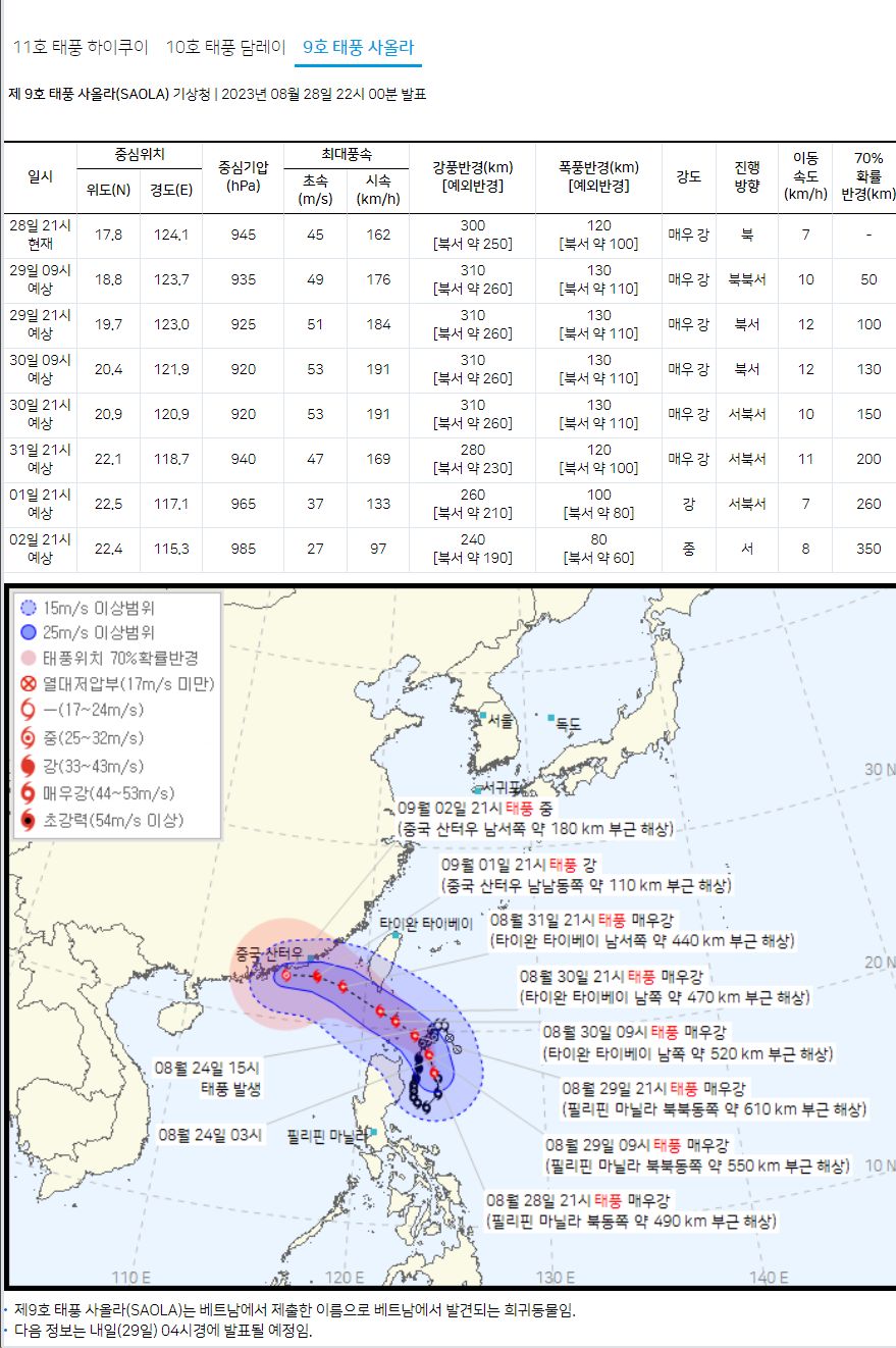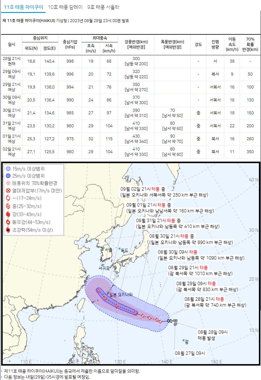 2023.8.29.일기예보, 중기날씨, 태풍예보 (기상청) 본문