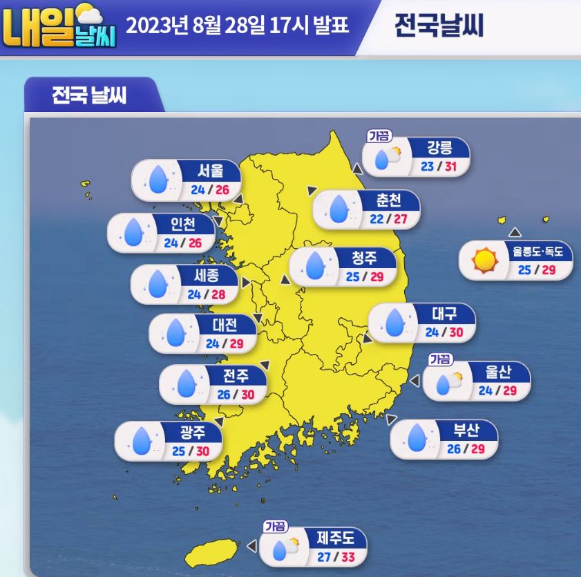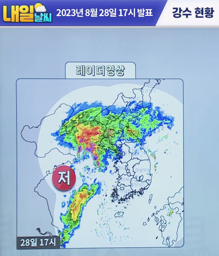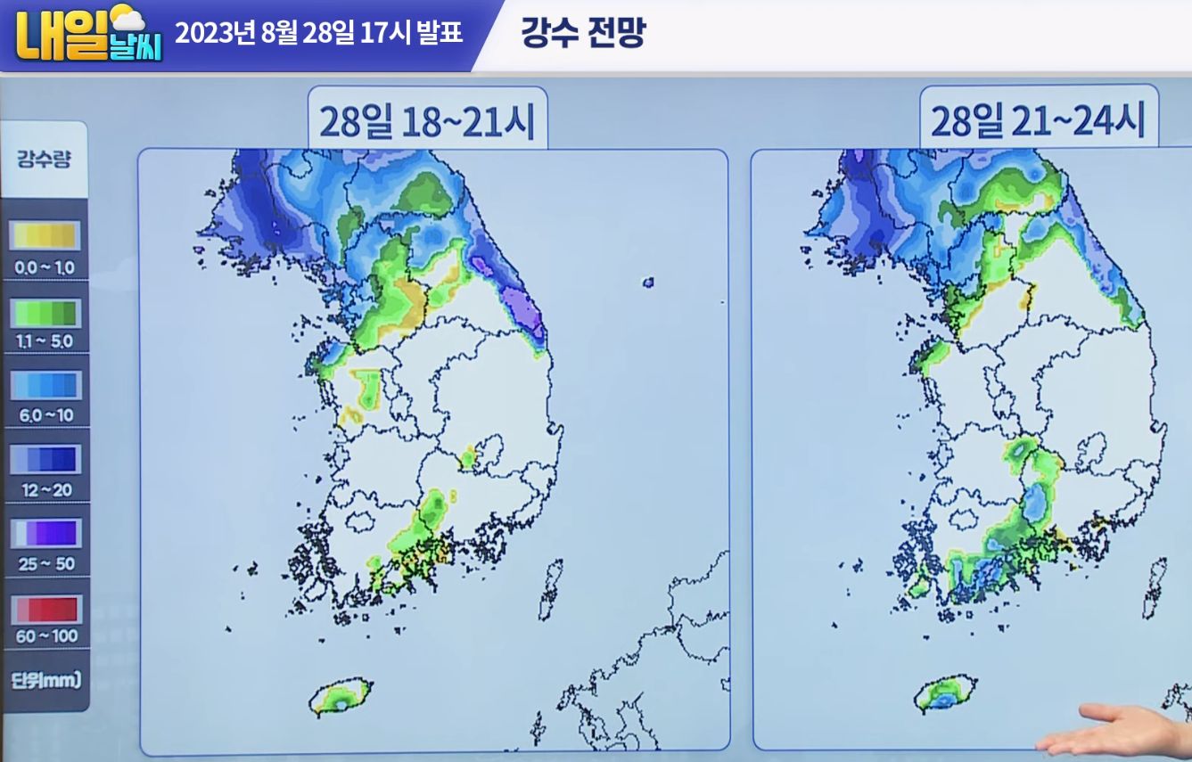 [내일날씨] 전국 가끔 비, 중부 많은 비. 8월 28일 17시 기준