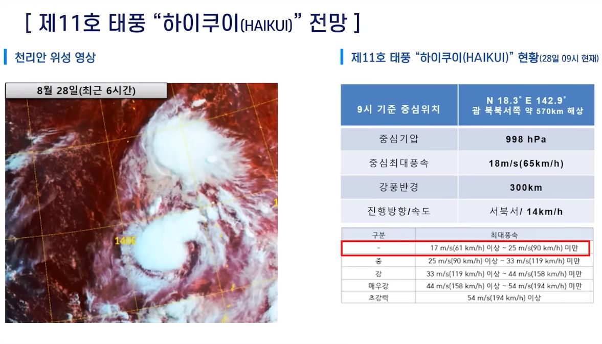 지금 관심가질 만한 놈은 제 11호 태풍 하이쿠미이입니다.