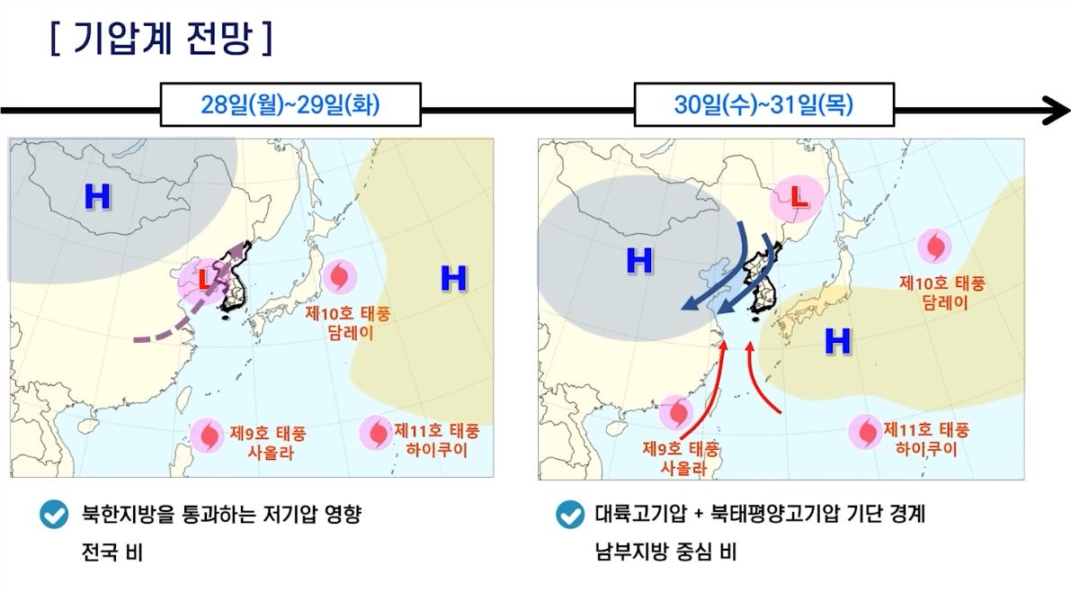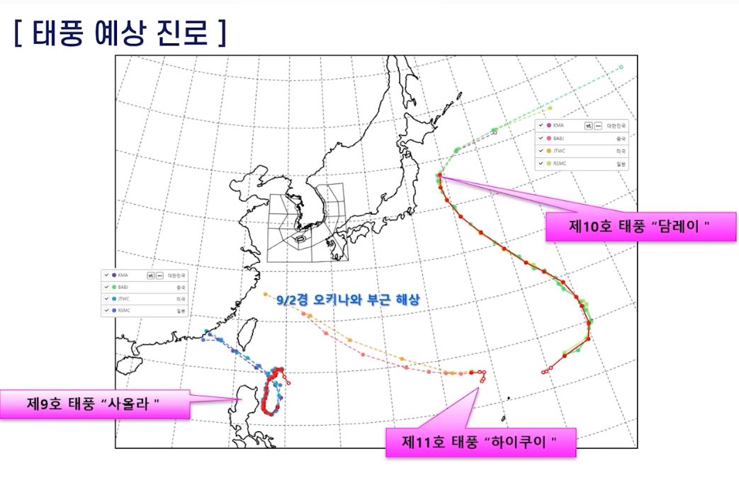 [기상청 브리핑] 태풍 9호 10호 11호 3개가 동시에! 많은 비는 중부에서 남부로!