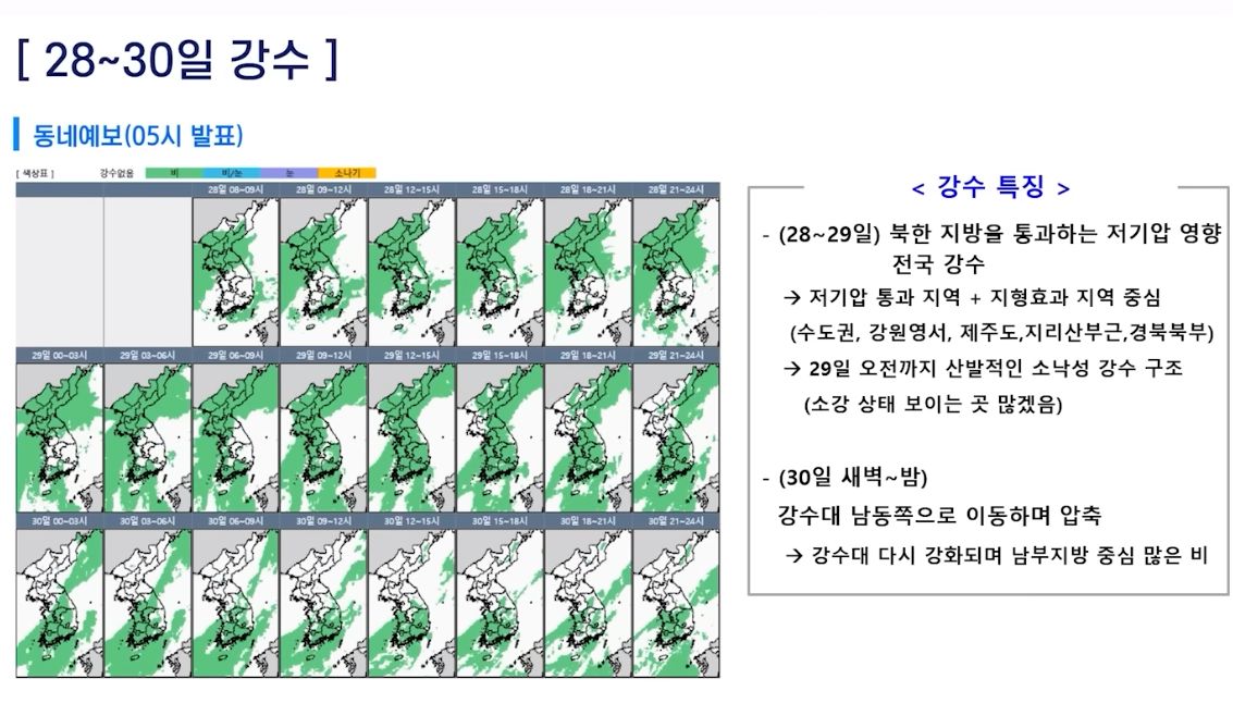 아래 예보는 어제(28일) 저녁 발표입니다.