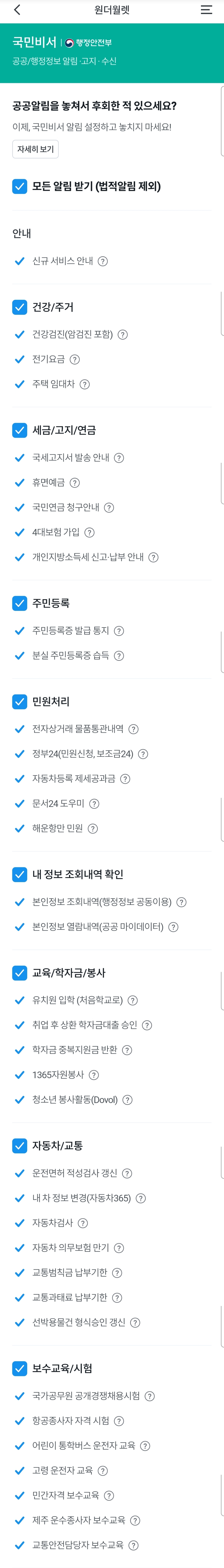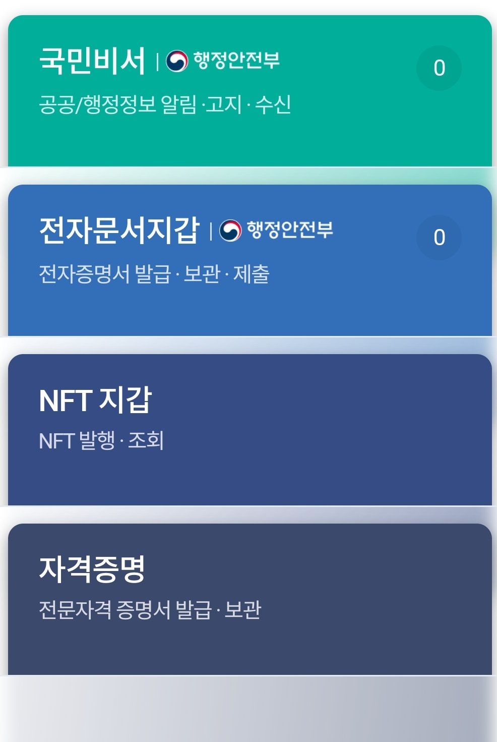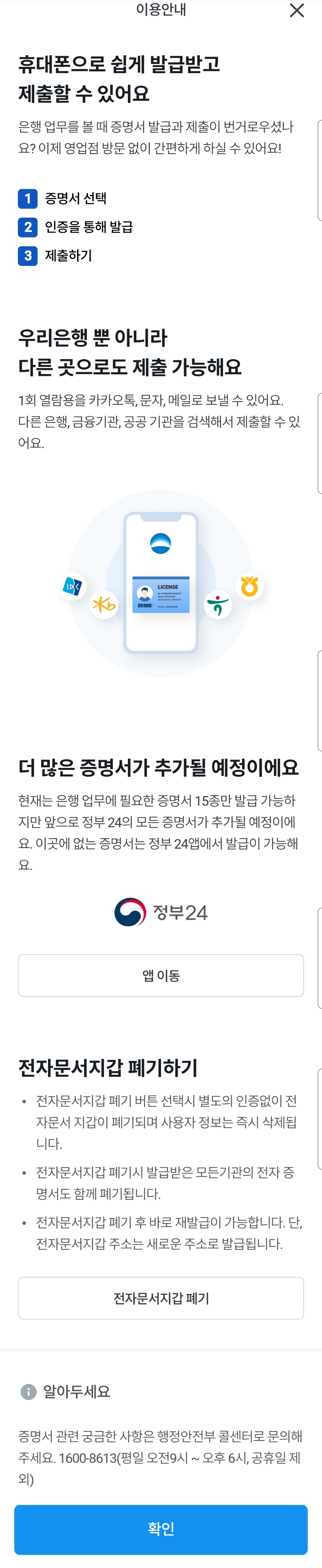 행정안전부) 국민비서알림, 전자문서지갑 서비스 목록(우리은행) 본문
