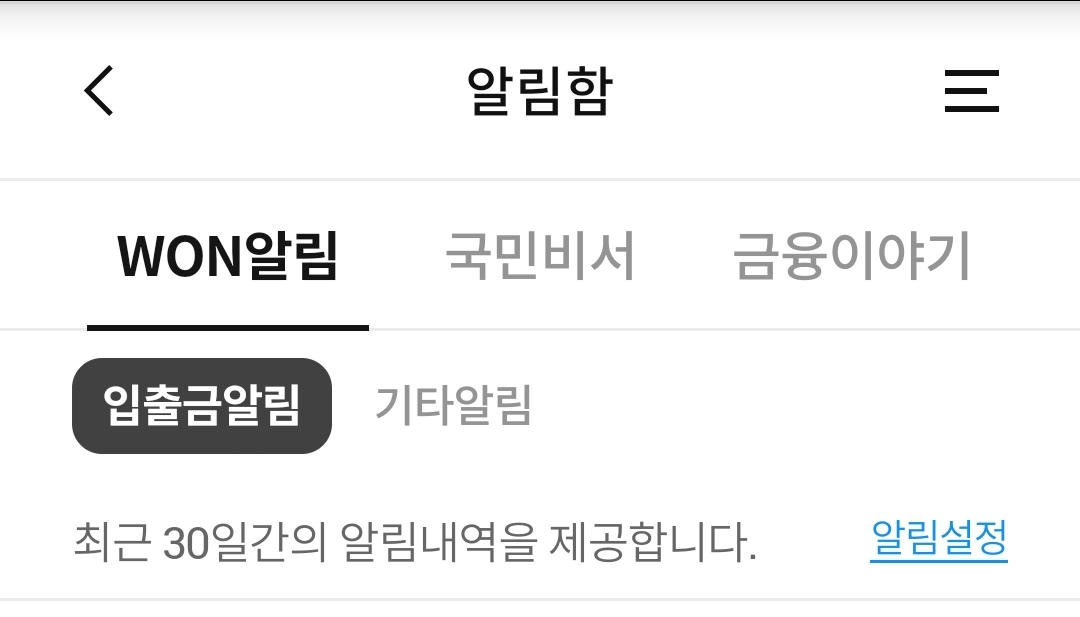 우리은행 앱은 알림목록에 국민비서가 있습니다.